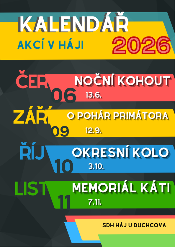 Akce doma 22. 1. 2026 Zpět Sdílejte článek: Sdílet na Facebook Sdílet na Facebook Akce pořádané na domácí půdě - v Háji u Duchcova.